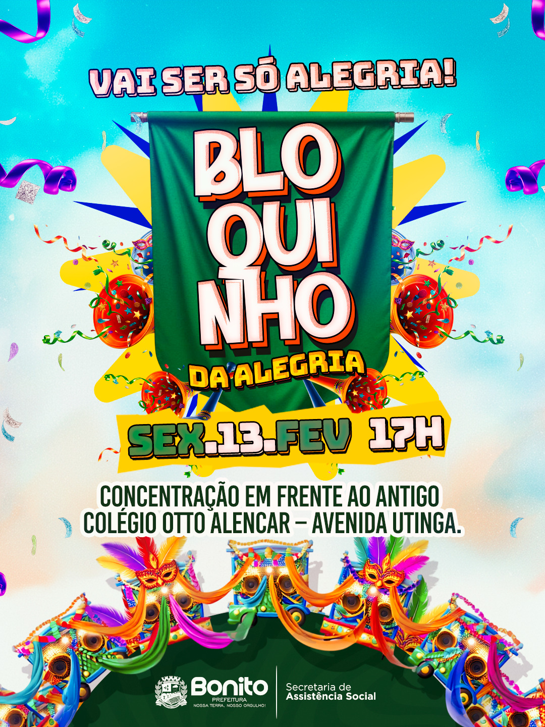 BLOQUINHO DA ALEGRIA ACONTECE NESTA SEXTA-FEIRA, 13 DE FEVEREIRO.