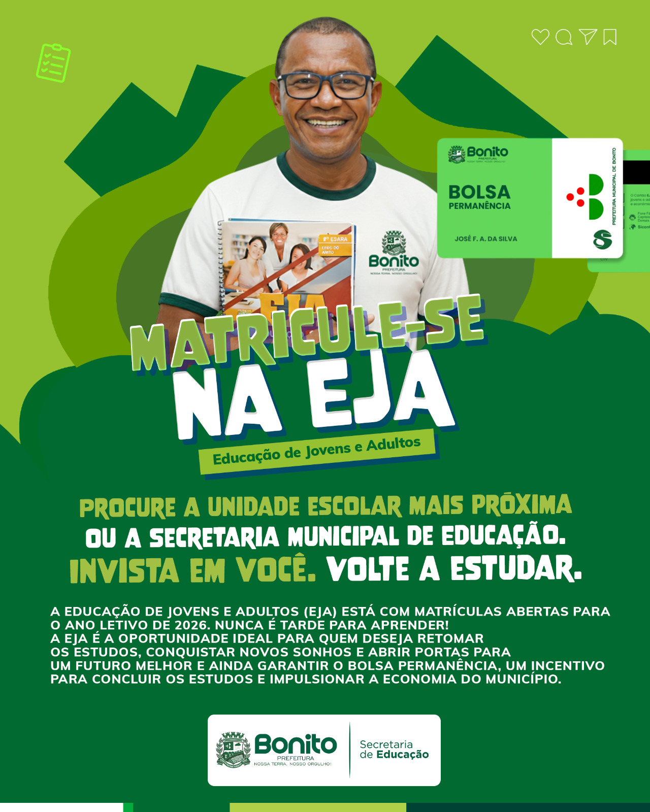Se você deseja fazer parte dos muitos alunos de Bonito já contemplados com esse incentivo, procure a escoa mais próxima ou a secretaria de educação e matricule-se!